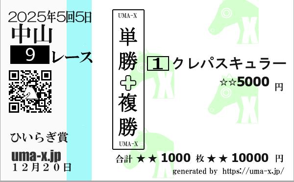 この予想は回収率が100%を超える保障及び的中率の期待値を保証するものではありません。馬券予想の参考としてご利用ください。