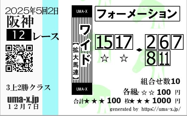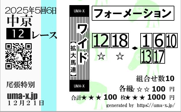 この予想は回収率が100%を超える保障及び的中率の期待値を保証するものではありません。馬券予想の参考としてご利用ください。