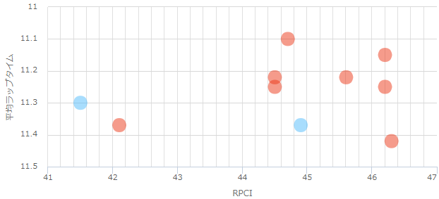 ここ10年RPCIで44~46くらいのハイペースで息が入らない展開が多い。