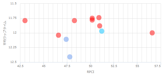 RPCI50くらいの平均ペースで、レースタイムは1分57秒8くらいのレースタイムとなります。
