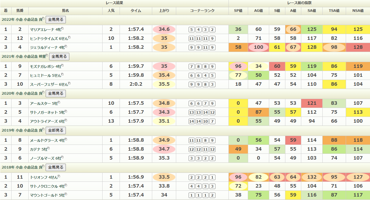 TSA値もそこそこで1~3位の馬が過去10年の小倉記念で7回1着になっている。