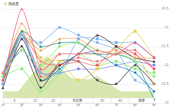 ハイペースの場合はレースタイムも速くなり1分45秒台の決着になることが多く、それ以外では1分46秒5前後くらいでの決着になる傾向。