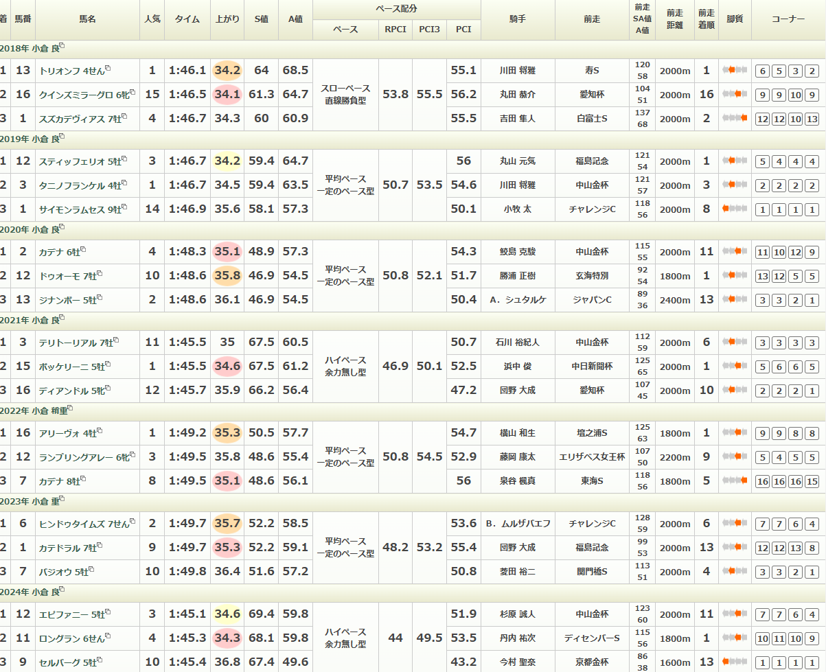 小倉の重賞は3回出走経験があり、2着1回4着2回と安定した成績。 後方からの競馬になるけれど上り最速タイムで走ることが出来るので展開が向き易そう。