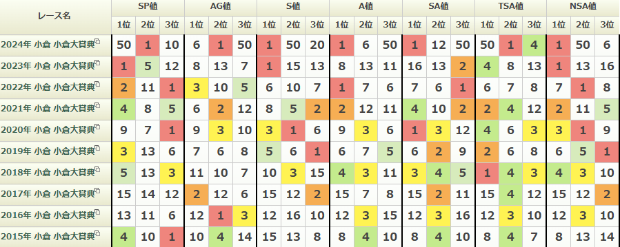 ここ5年くらいのNSA値1位~2位は馬券にそこそこ絡んでいるので良さそう。