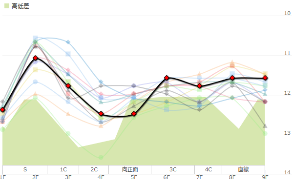 後ろ過ぎると届かないので、後方から進める馬は3~4コーナーからペースを上げる必要があり器用さが必要。