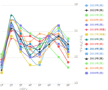 通常は1:32.2前後のタイムで上りは33.3前後くらいになり、今年も恐らく同程度のタイムになると思います。