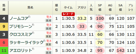 数値が高くなるということは、レースタイムが早いもしくは上り3ハロンのタイムが早いのどちらかになります。
