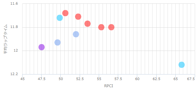 RPCIは51~56くらいで平均~スローペース傾向です。