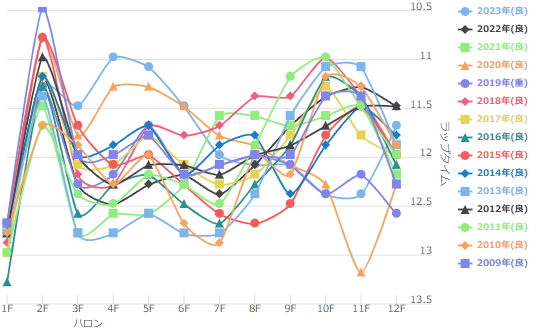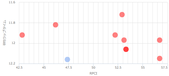 ペース傾向はハイペースからスローペースまでバラバラで比較的RPCI53前後のスローペースになることが多い。