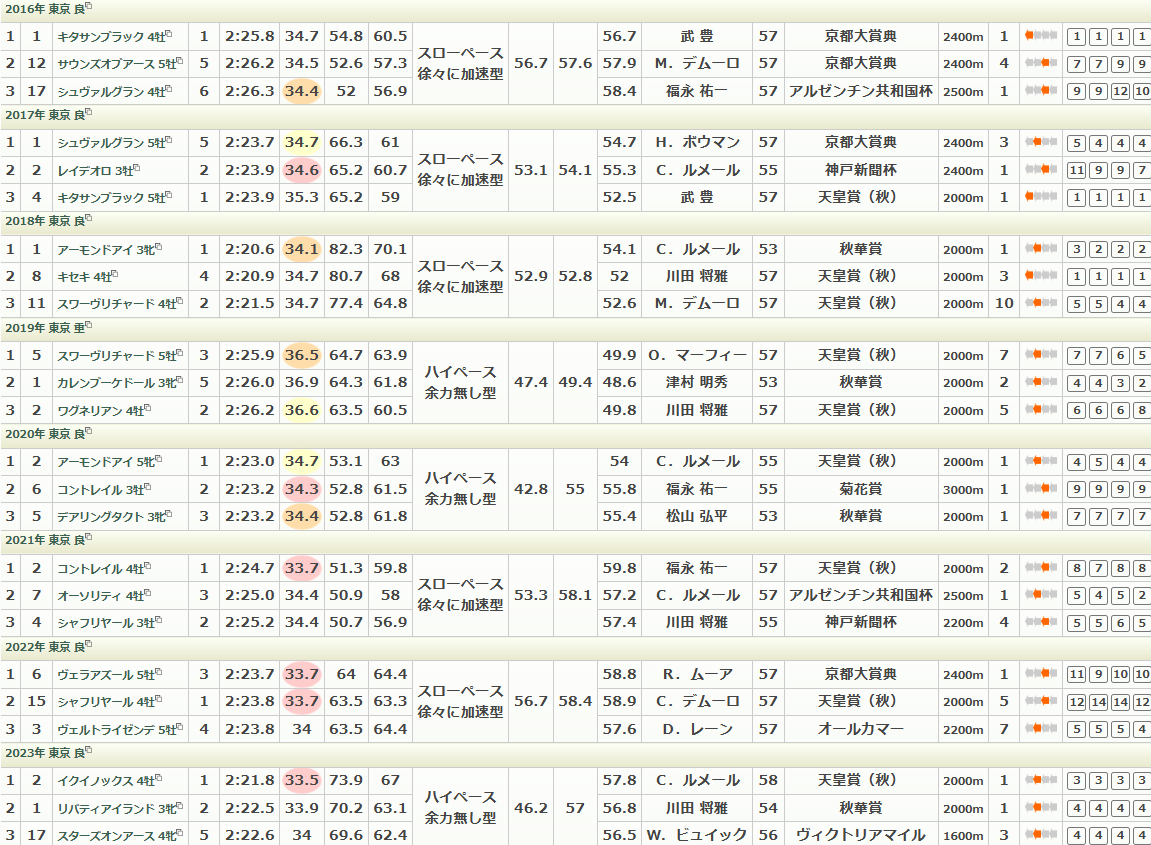 天皇賞(秋)、菊花賞、秋華賞の秋のGI組と京都大賞典からのローテーションが目立つ。