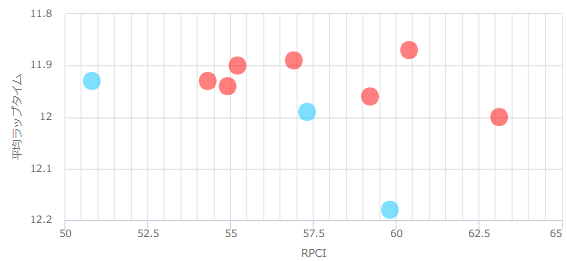 レースタイムは1分47秒台になることが多く、速いレースタイムにはなり難い印象。