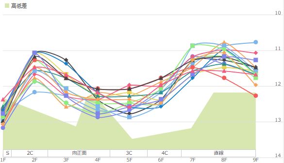 レースタイムは1分47秒1前後のタイムとなり、それほど早い時計にはならないことが多い。