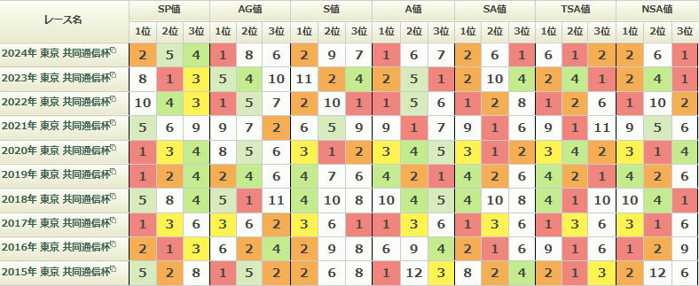 複数の項目で1~3位になっている馬の活躍が目立つ。