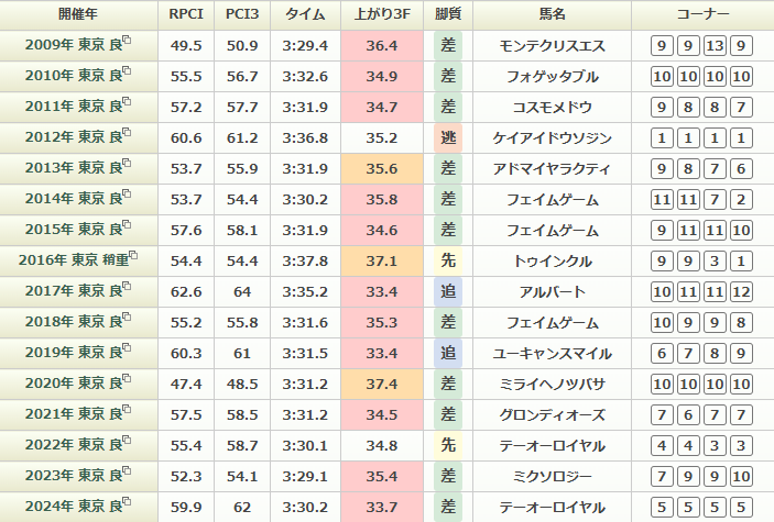 3着内で見てみても、上り3Fの速い馬の活躍が目立つ。