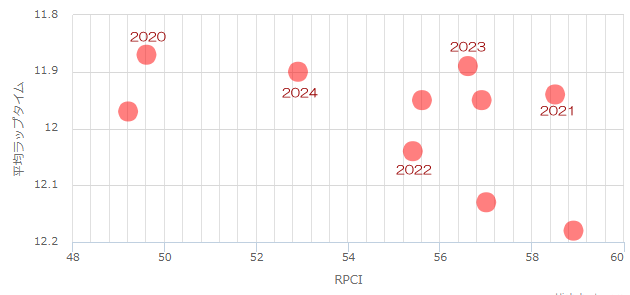 ペースは年によってはハイペースになることもあるけれど、基本的にはRPCI56前後のスローペースになることが多い。