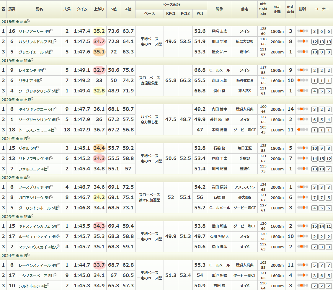 良馬場時は2021年のように後方からでも届く競馬になり易いようです。