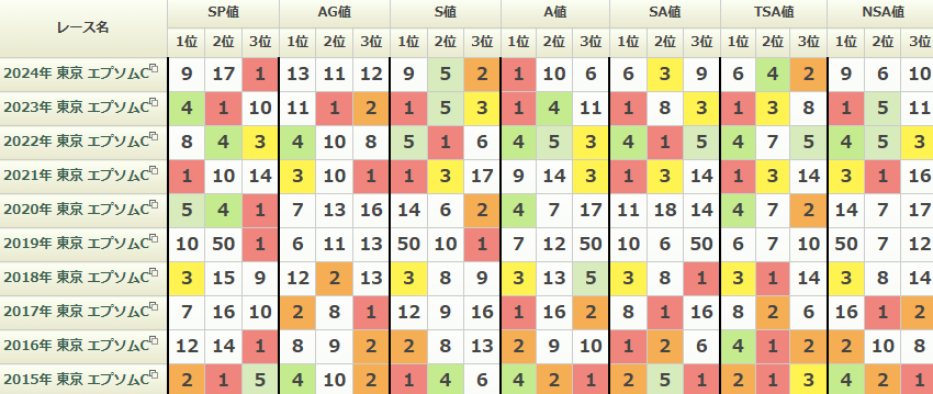 次いでSP値とA値が1位のジューンテイク、SP値とS値が2位のディープモンスターなど。