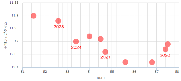 レースタイムは2分24秒0前後になることが多いです。