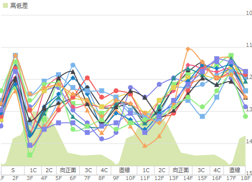 レースタイムは3分46秒0前後になることが多く、上り3F最速タイムは35秒0前後になる。