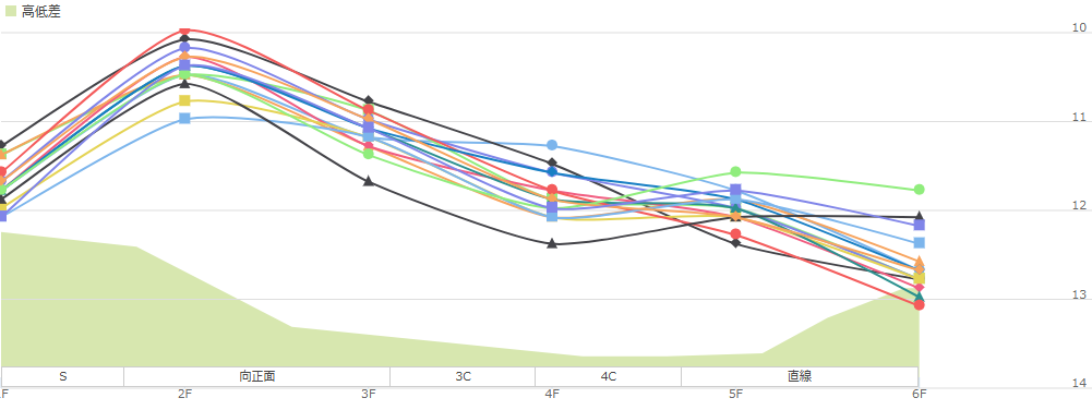比較的上り3Fのタイムは重視されず、このハイペースの中PCI43~46くらいで走れると勝ち負けになる。