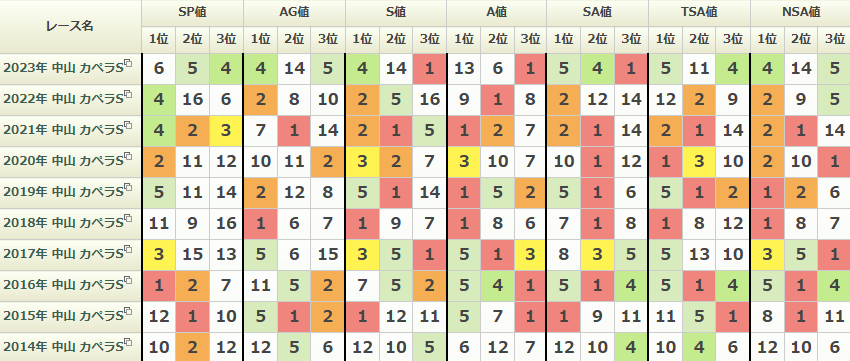 今年数値で目立つのはテイエムトッキュウでS値・NSA値・TSA値・SA値・SP値の5項目で1位