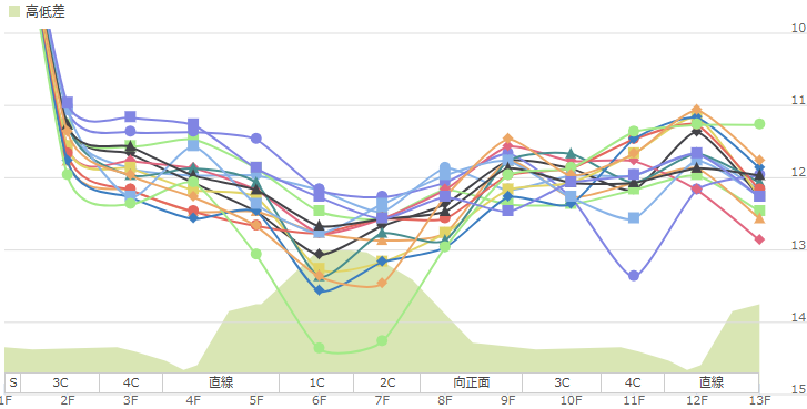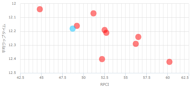 ペース傾向は見事にバラバラでレースタイムもまちまち。基本的にはRPCI52のややスローペースでレースタイムは2分32秒0前後になることが多い。