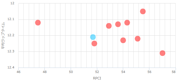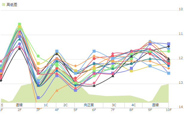 向こう正面から徐々にペースが上がり始め、ゴールまでペースが右肩上がりに上がっていく。
