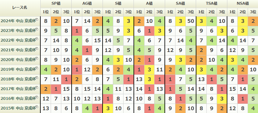 末脚勝負になり易いレースなので、A値やAG値の数値が高い馬が活躍しやすい。