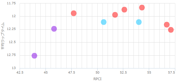 RPCIは52~54くらいのややスローペースになる傾向でレースタイムは1分46秒8前後になる予想。