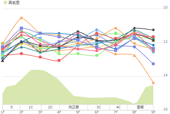 スタートからゴールまで終始12秒0前後のペースで進むワンペースになりがち。
