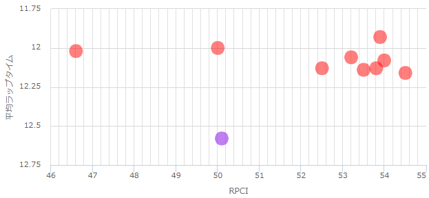 RPCIは53前後くらいのややスローペースになることが多い。レースタイムは1分48秒3前後になることが多くそれほど大きなずれは出ない。