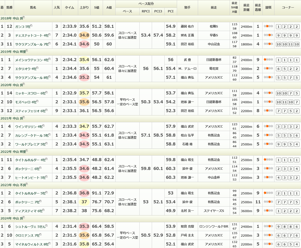 稍重時は2分34秒~2分35秒くらいのタイムになり、今年は2分34秒5くらいになる予想。