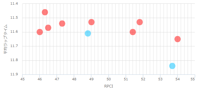 基本的にはRPCI46のハイペースになることが多く、レースタイムは1分32秒3前後になることが多い。