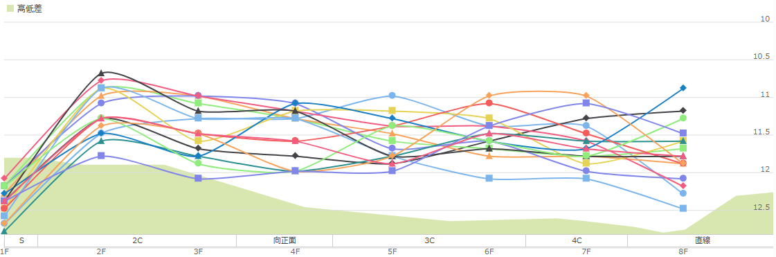 S値が高くなりやすいくタイムは速くなりがちで、PCI3も多くの場合は50を超えるので速いタイムでも後半に足を残せるタイプが強い。