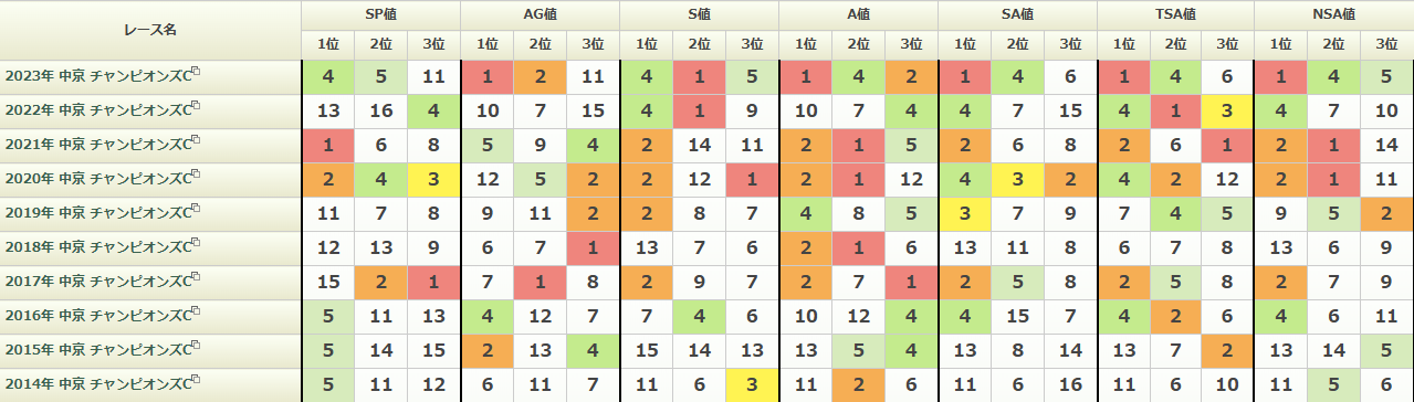S値とTSA値もボチボチくらいで、全体的に数値の高い馬は馬券に絡み易い。