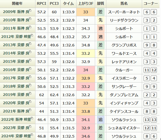 とにかく上りの速い馬が1着になることが多く、上りの速さだけで見ても良いかも知れない。