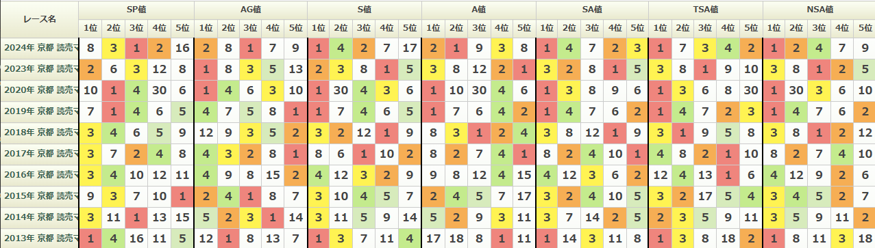 各数値の1位の馬がそのまま馬券に絡むケースが多い。