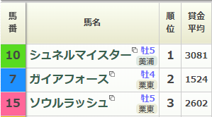 比較的堅い結果になるレースなので、実績馬(賞金平均の数値が高い馬)がそのまま上位に来るケースが多い。