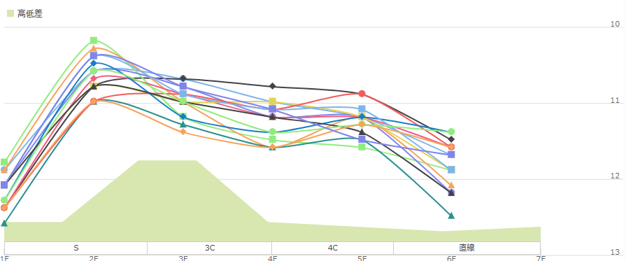 3コーナーに入っても速いペースは続き11秒前後で進み、直線でもそのまま早いタイムでゴールとなる消耗戦になります。