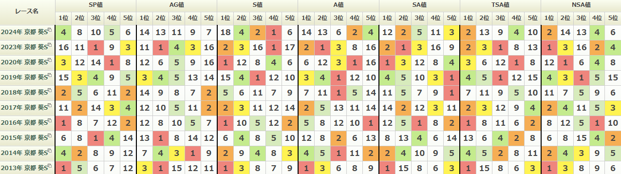 TSA値も1位が過去10年で6回馬券に絡んでいて比較的良さそうです。