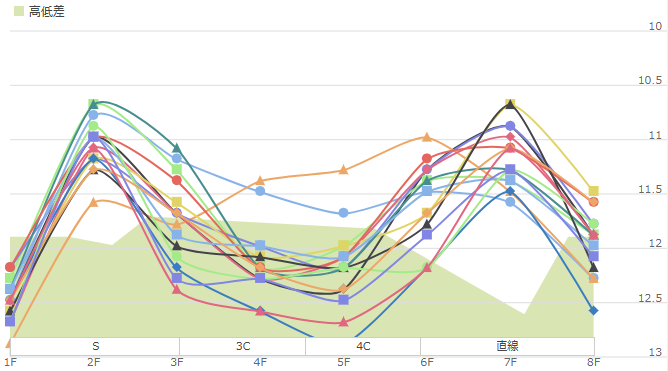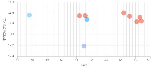 PCI3が54を超えることが多く、RPCIも55前後とかなり後傾ラップになりやすいので末脚重視で見ても良いかと思う。