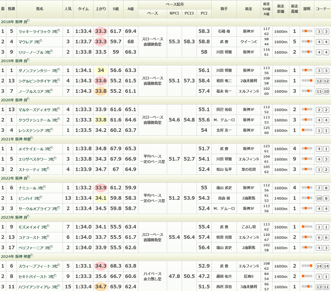 阪神JFからのローテーションが目立ち今年はビップデイジーが好走例に該当しそう。