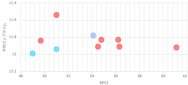 今年はRPCI50前後の平均ペースになり、レースタイムは1分47秒台のレースになりそう。