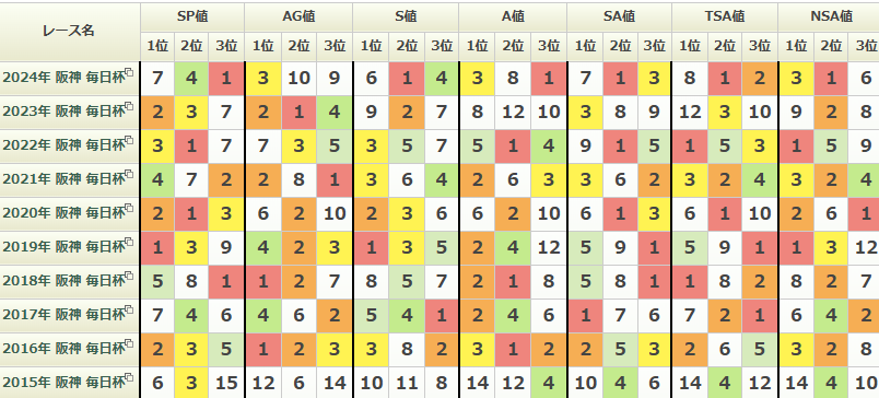 次いで高いのはA値・NSA値・AG値・SA値2位、S値3位のネブラディスク、TSA値・S値2位でSA値3位のリラエンブレム。
