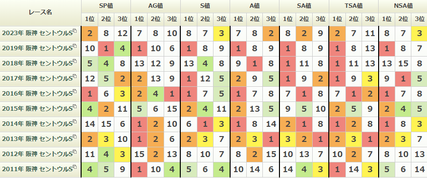 TSA値3位までの馬が過去10年で7回1着になり、4回2着に入っています。