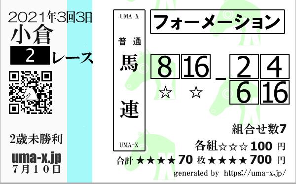 | カシノコマンド 牝2 美浦 | 2 | 1:10.3 | 36.6 |
