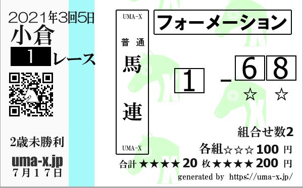 | 2019年 小倉 2歳未勝利 | 5 | 8 | 6 | 3 | 10 | 1 | 8 | 9 | 3 | 2 | 8 | 5 | 3 | 2 | 7 | 8 | 1 | 3 | 5 | 2 | 8 | 3 | 1 | 2 | 6 | 8 | 1 | 2 | 3 | 9 | 3 | 1 | 8 | 6 | 5 |