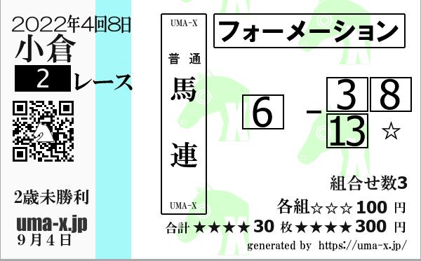 | スーサンベガ 牝2 栗東 | 4 | 1:9.0 | 35.3 |