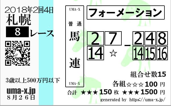 8丸田 恭介 | 16西村 真幸 | 40ルーラーシップ | 14ミラクルフラッグ | 小林正和 | 出口牧場 | ||