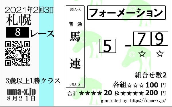 | 2020年 札幌 3上1勝クラス | 1 | 3 | 6 | 2 | 7 | 2 | 8 | 12 | 11 | 7 | 2 | 5 | 7 | 1 | 6 | 2 | 5 | 7 | 11 | 1 | 2 | 4 | 7 | 5 | 1 | 2 | 4 | 7 | 9 | 5 | 2 | 7 | 1 | 4 | 5 |